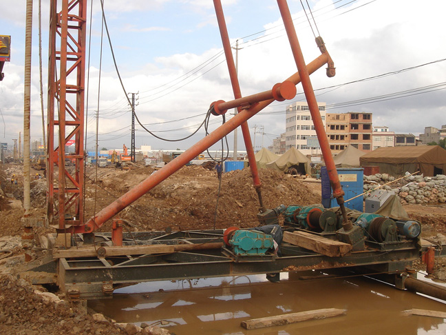 SJ系列深層攪拌樁機(jī)利用驅(qū)動(dòng)攪拌動(dòng)力頭轉(zhuǎn)動(dòng),將地層深處軟粘土或沙等土層與水泥等固化劑強(qiáng)制拌和后,使軟土與水泥發(fā)生化學(xué)反應(yīng)硬結(jié)改性。改性后的軟土強(qiáng)度大大高于天然強(qiáng)度,其壓縮性、滲水性比天然軟土大大降低,水泥土體成形后可提高地基承載力、減少沉降,對(duì)已有建筑物不產(chǎn)生影響,減少大量土方工程量,提高經(jīng)濟(jì)效益。